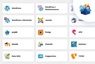 PhpBB, Piwigo, SPIP, Moodle, Drupal, DotClear2, Concrete5, CMS Made Simple, Contao, Domain Seller, Coming soon tool, OSClass, Coppermine, Gallery 2, B2evolution, Nuked Klan, DokuWiki, Thelia 2 online store et d'autres logiciels si vous choisissez un de nos plans d'hébergement cPanel.