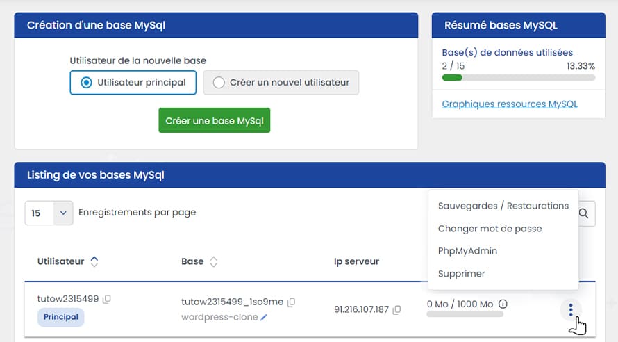 Utwórz tyle baz danych, na ile pozwala Twój plan hostingowy LWS. Łatwe tworzenie kopii zapasowych i przywracanie baz danych za darmo, zmiana haseł użytkowników, dodawanie lub usuwanie baz danych oraz monitorowanie przydziałów - wszystko z jednej strony.