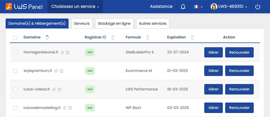 Obszar klienta panelu LWS jest dostępny w języku francuskim i angielskim.