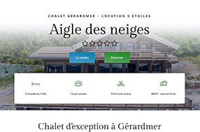 Site vitrine d'un chalet 5 étoiles pouvant accueillir jusqu'à 12 personnes avec 5 chambres à louer à Gérardmer, créé avec WordPress.