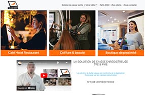 Site web vitrine d'une solution de caisse enregistreuse tactile pour magasins, restaurants et salons, créé avec WordPress.
