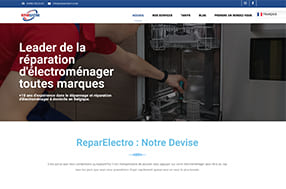 Site vitrine d'une entreprise spécialisée dans la réparation d'appareils électroménagers en Belgique, créé avec WordPress.