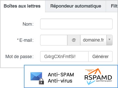 Manage email addresses based on the domains linked to your plan. Add mailboxes, aliases, email forwarding, mailing lists, anti-spam filters, whitelists, blacklists, and more.